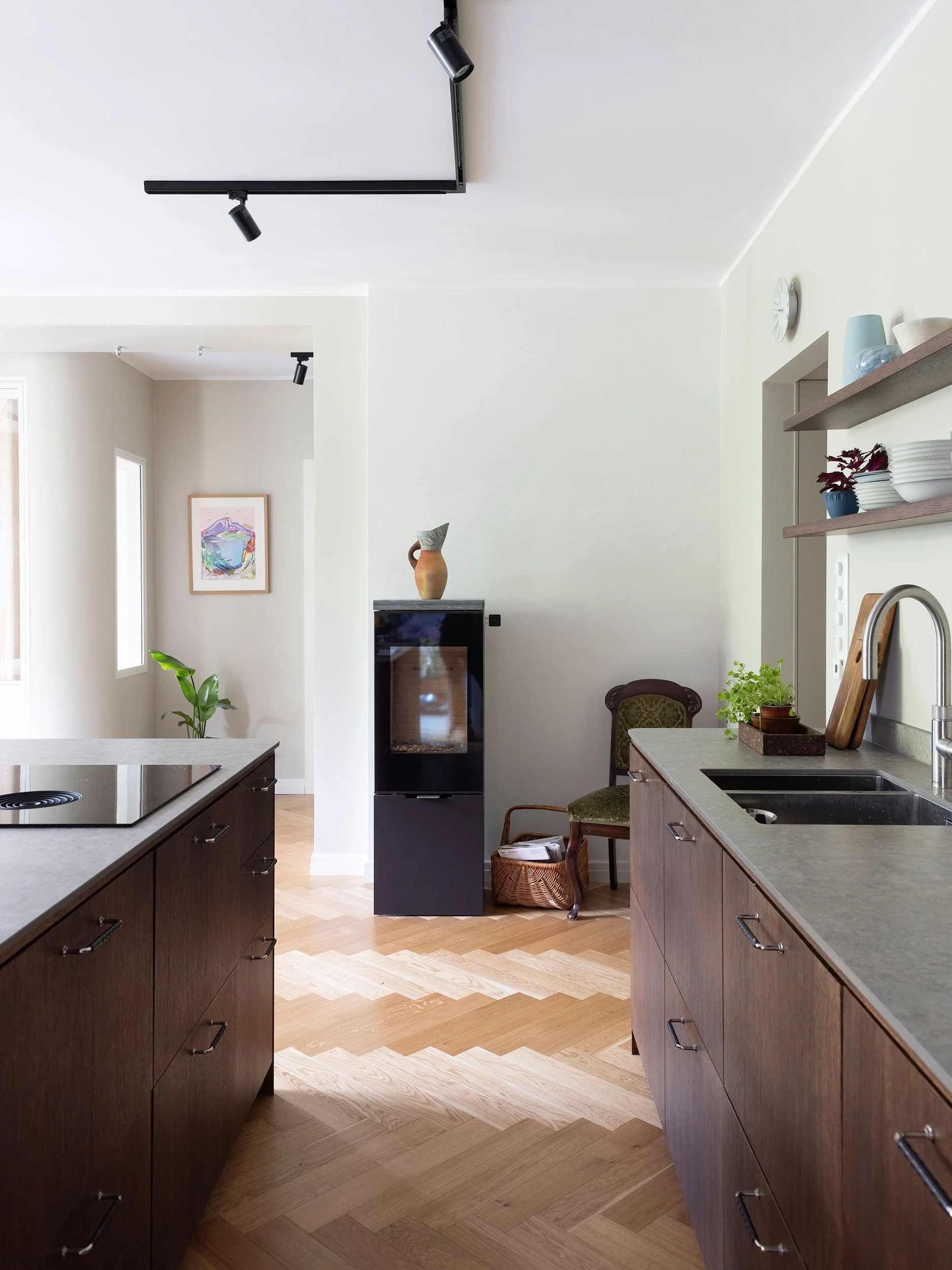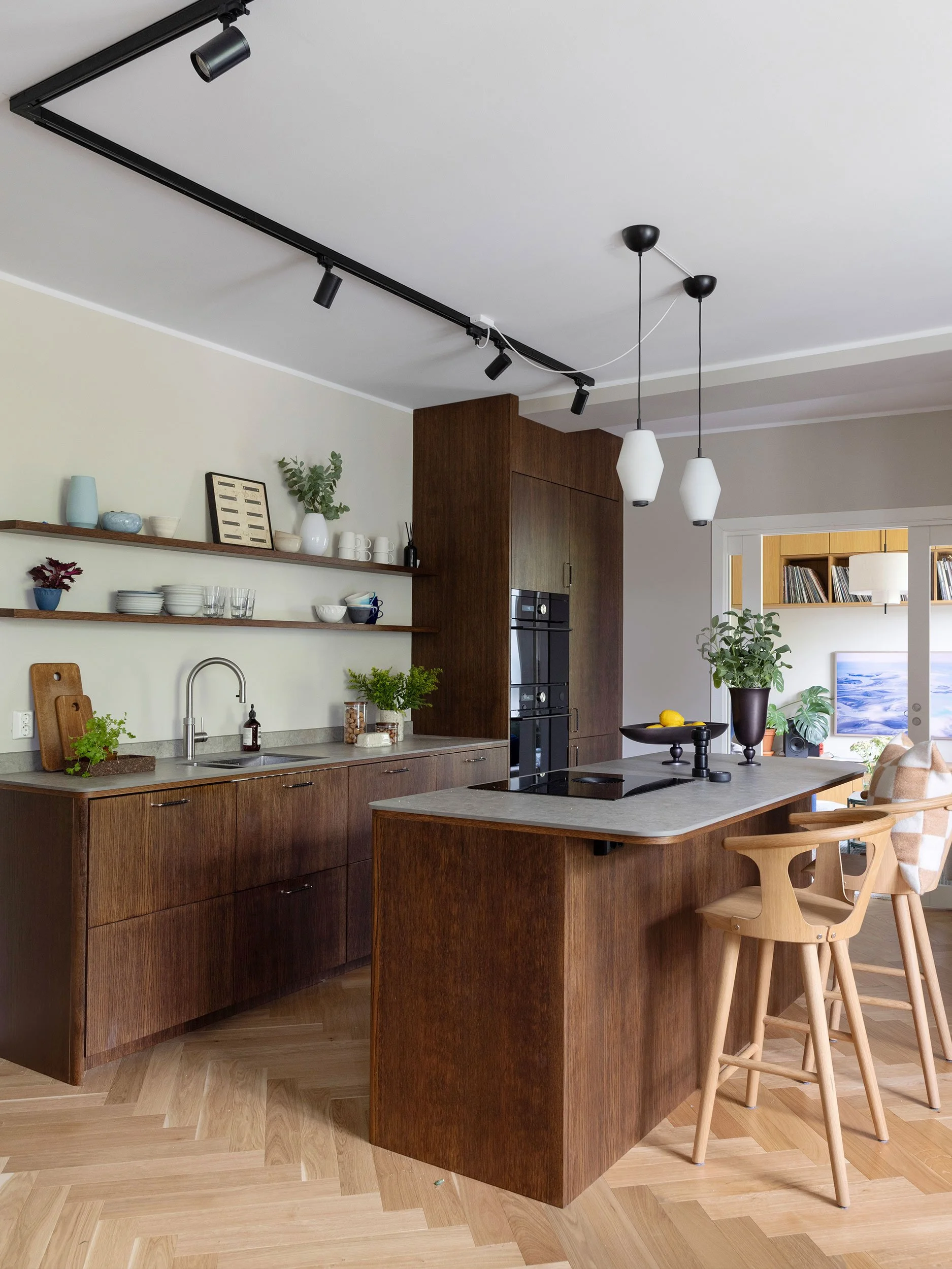I stedet for å åpne ytterligere opp, ble løsningen å etablere flere, tydelig definerte rom. Resultatet er en bolig med bedre struktur, hvor hver sone har fått en klar funksjon uten at lys og romfølelse er gått tapt.